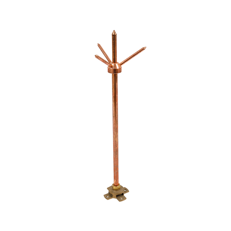 針式銅避雷針是根據尖端放電原理及增強避雷針電荷積聚能力、提高尖端電場強度、降低泄放電流峰值的設計構思所產生的一種有效接閃裝置